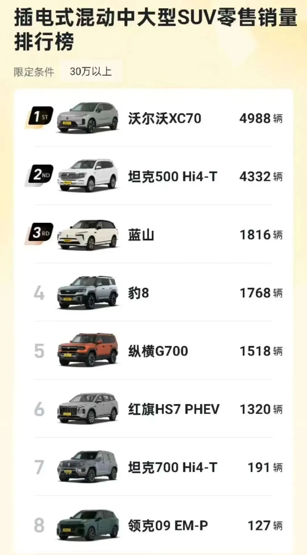 大家都在看国产新势力车型的争奇斗艳,但是你肯定想不到,2025年12月的30万以上插混SUV销冠,居然并不是自主品牌的,而是沃尔沃XC70。很反直觉对吧?要知道沃尔沃是豪华品牌转型新能源的头牌了,上市3个月销量就达到了14199台,在合资品牌当中确实非常优秀。北欧的简约奢华,极致的安全能力,再加上新能源的加持,是真的做到了“我全都要”!