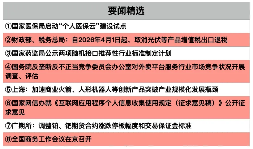 点评:进口依赖度高的高端制造、医疗健康企业成本有望下降,出口导向型企业需关注海外关税调整带来的市场准入变化,跨境电商需应对多国免税政策取消的成本压力。