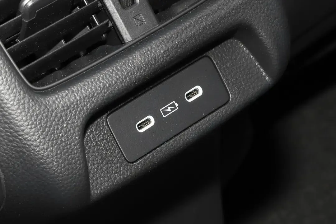储物空间的实用性也很强,车内到处都是小的储物格。门板上的储物槽能放下大号的水杯,中央扶手箱的空间也比较规整,能放不少东西,前排还有两个USB/Type-C接口,后排也配备了两个,日常给手机充电很方便。