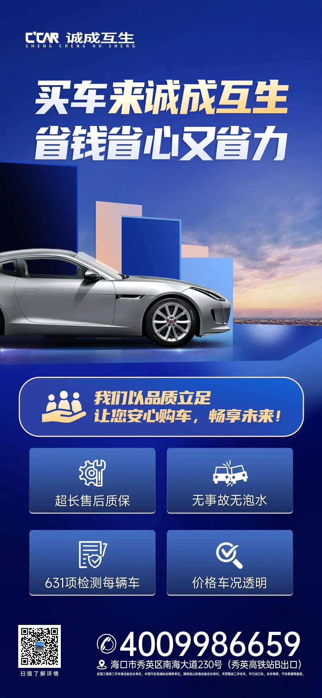 诚成互生二手车,实体经营22年,多台精品好车,现车立提,车况透明,价格合理,放心购买,售后有保障,即日起所售车型,开始整车质保,全国联保,让你用车更安全,此外诚成互生二手车还有超级会员增值服务体系让你买车放心,用车安心!