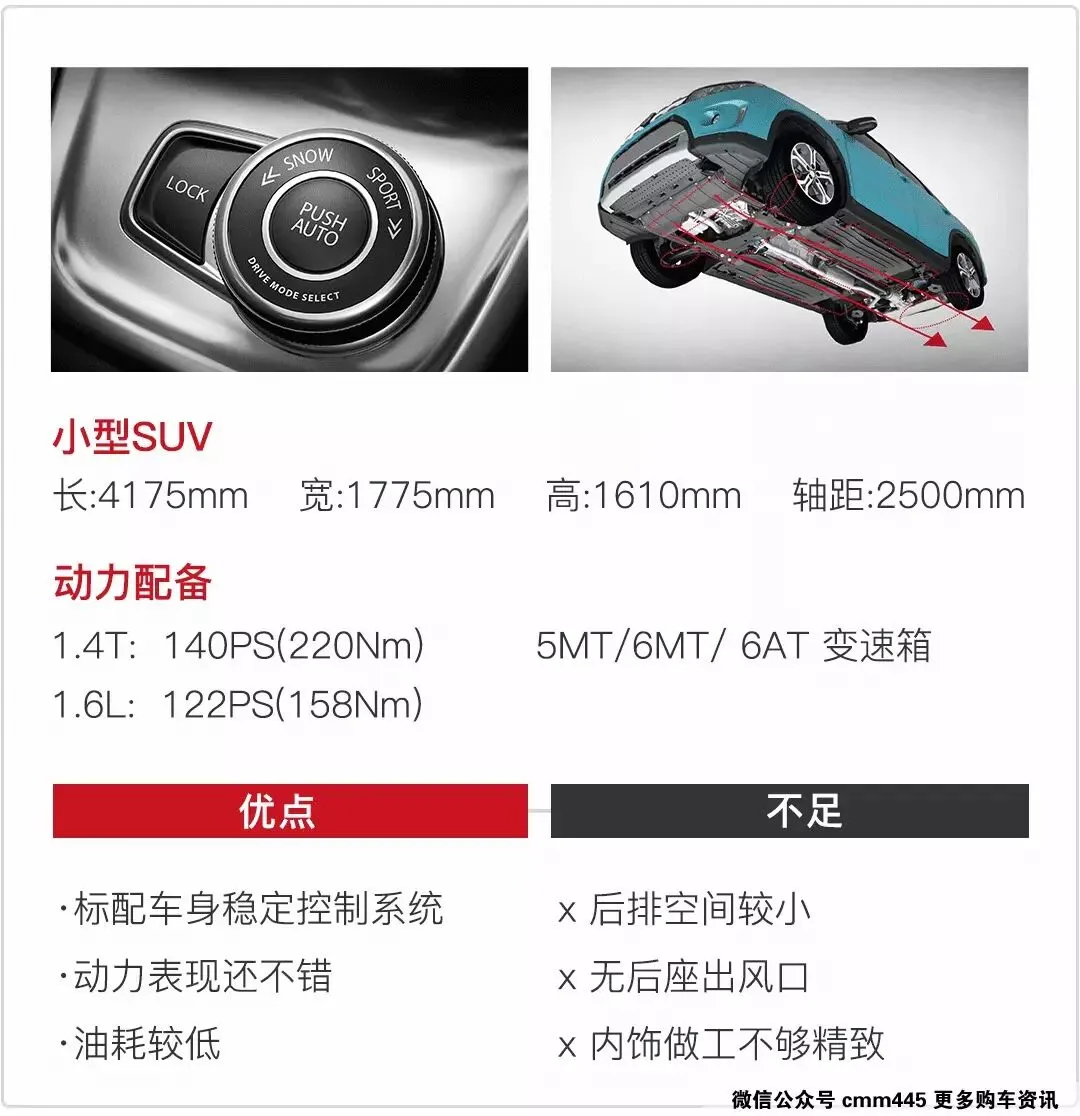 3、全时四驱系统在小型SUV中难得一见。