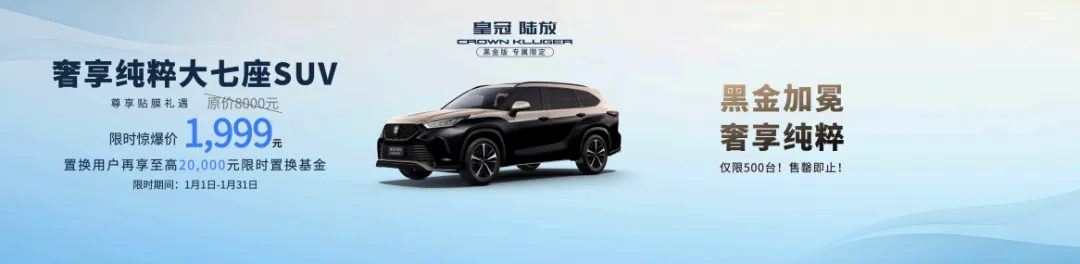 #皇冠陆放 推出黑金版尊享贴膜礼遇,原价8000元的原厂隔热膜限时1999元,限量500台,1月1日-1月31日置换用户可享至高2万元置换基金。