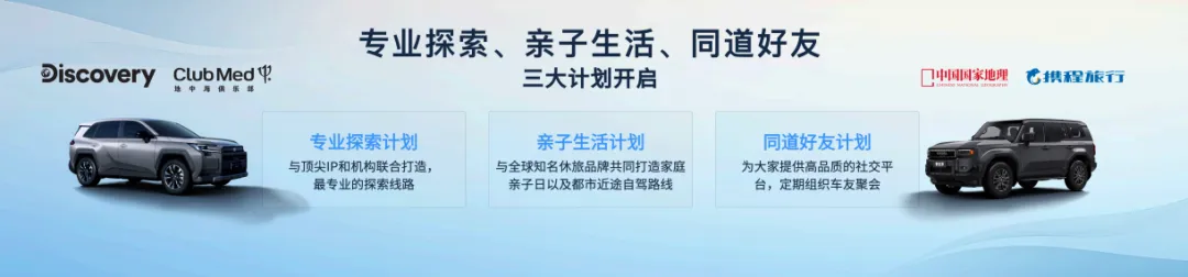 一汽丰田还宣布启动三大专属计划,构建全链路车生活生态。专业探索计划将联合顶尖IP打造探索线路,亲子生活计划将推出家庭休旅路线,同道好友计划将组织车友聚会,为用户提供多元生活体验。