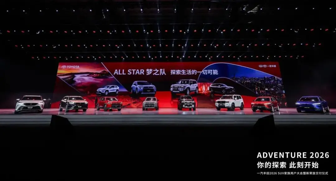 1月9日,一汽丰田第六代全新荣放宣布开启全国交付,同时旗下SUV家族全系推出限时购车福利,涵盖全新荣放、普拉多、皇冠陆放及锐放四大车型。