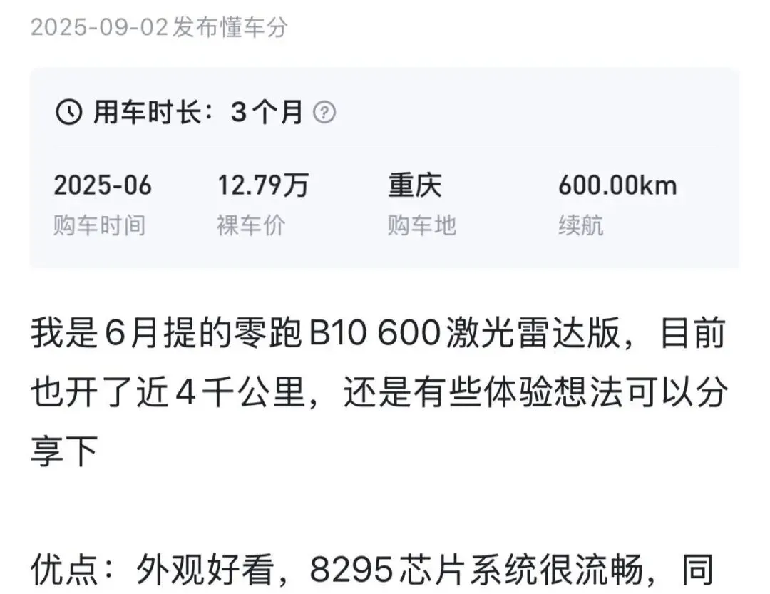 零跑B10的大电池是真材实料,城市通勤500+公里都没问题。