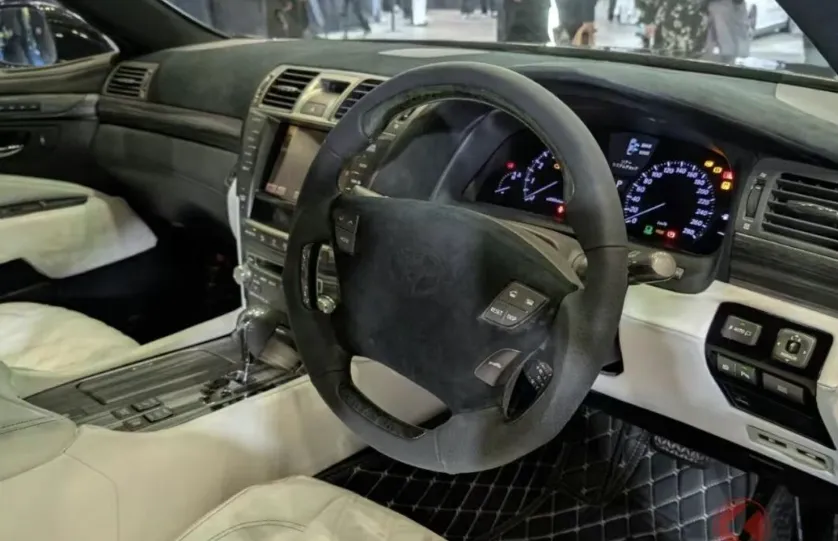 受限于原车平台年份,内饰的改装空间不算大,整体还是以第四代LS460的内饰为基础。白色L-TIDE座椅套增添了几分精致感,但复古气息依然浓郁。