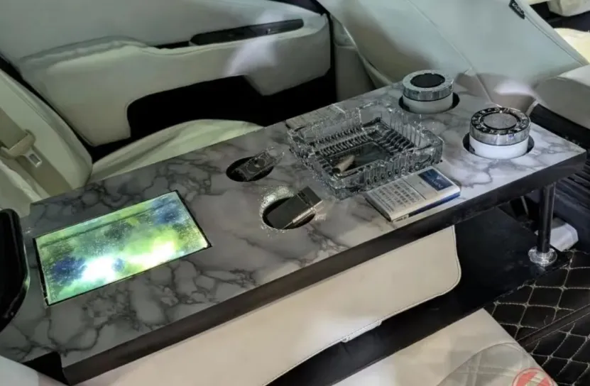 最有意思的是后排设计,设计者加入了一个类似“移动茶几”的中置结构,把杯架、烟灰缸和香烟收纳位都集成在了一起。这种对传统行政用车场景的致敬,在当下追求智能科技的新车市场里,显得格外反潮流,却也藏着满满的情怀。