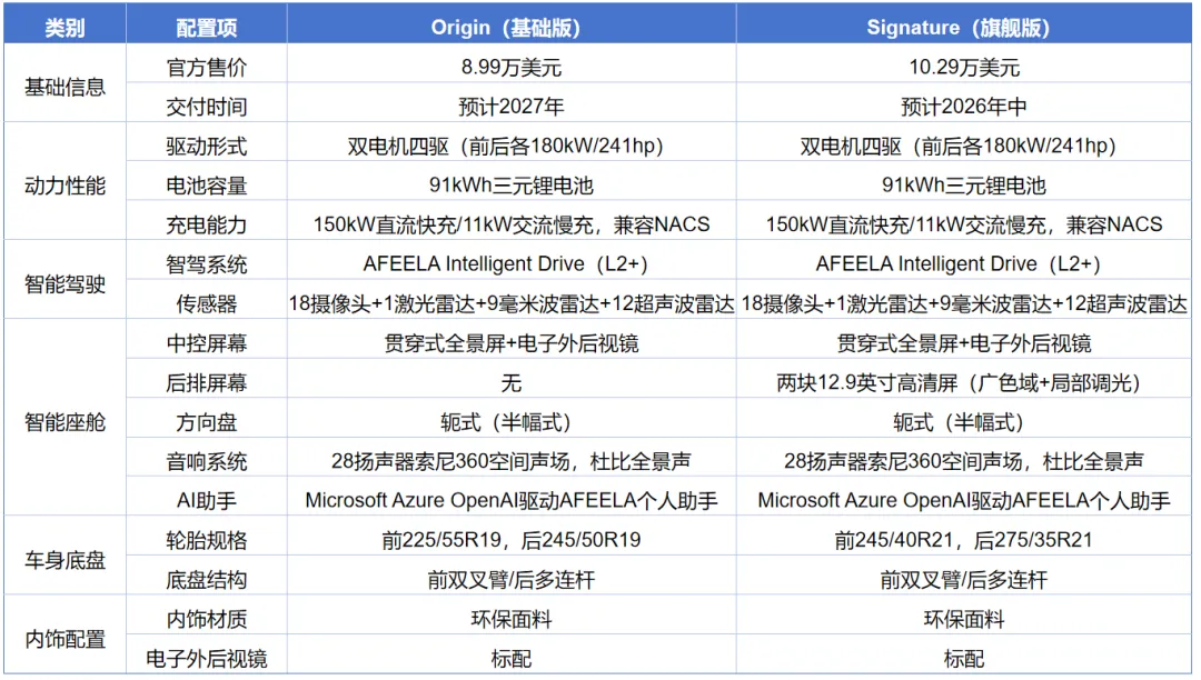 2025 年 CES 展,AFEELA 正式开售,推出AFEELA 1,顶配版售价 10 万美元