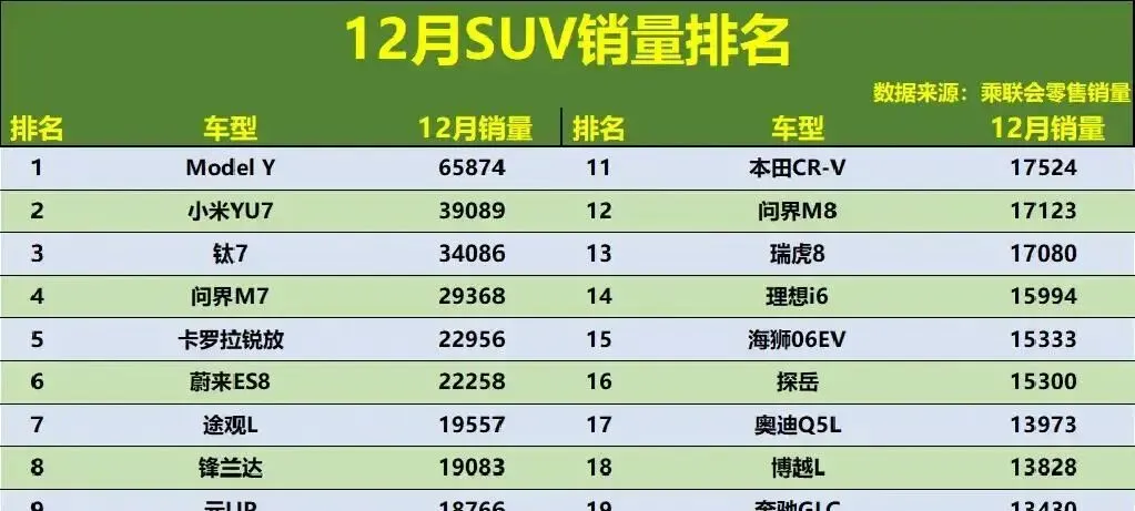 今年SUV收官战,新能源车直接封神。小米YU7这匹黑马,月销稳在3.9万,亚军当得稳如老狗。上周闺蜜哭着发我消息:“我买车差点被4S店忽悠,说油车保值,结果咬牙冲了问界M7,现在充电比加油还快,一个月省下200块油钱!” 她发来照片:车机屏上显示“今日省油23.8元”,我笑到打鸣——真香啊,姐妹!