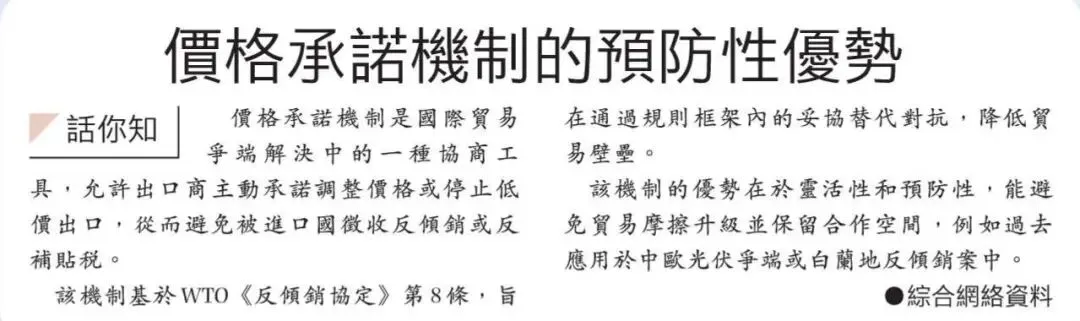 通報指出,為落實中歐領導人會晤共識,妥善解決歐盟對華電動汽車案,中歐雙方本着相互尊重的態度,進行了多輪磋商。雙方一致認為,有必要向對歐盟出口純電動汽車的中國出口商,提供關於價格承諾的通用指導,以便中國出口商可通過更加實用、有針對性且符合世貿組織規則的方式,解決相關關注。為此,歐方將發布《關於提交價格承諾申請的指導文件》,並在文件中確認,歐方將秉持非歧視原則,根據世貿組織規則有關規定,對每一項價格承諾申請,適用相同法律標準,並以客觀和公正的方式進行評估。通報稱,這充分體現了中歐雙方的對話精神和磋商成果。中歐雙方有能力、有意願,在世貿組織規則框架下,通過對話磋商妥善化解分歧,維護中歐及全球汽車產業鏈供應鏈穩定。這不僅有利於中歐經貿關係健康發展,也有利於維護以規則為基礎的國際貿易秩序。同日,中國機電商會發布關於中歐通過對話磋商妥善解決電動汽車反補貼案達成積極成果的聲明。中國機電商會認為,妥善解決歐盟對華電動汽車反補貼案,是中歐電動汽車上下游業界的普遍期待,有助於促進中歐相關產業鏈供應鏈的安全穩定,維護中歐經貿合作大局及以規則為基礎的國際貿易秩序。中歐雙方本着相互尊重和對話精神,經過多輪磋商,成功推動該案實現「軟着陸」。