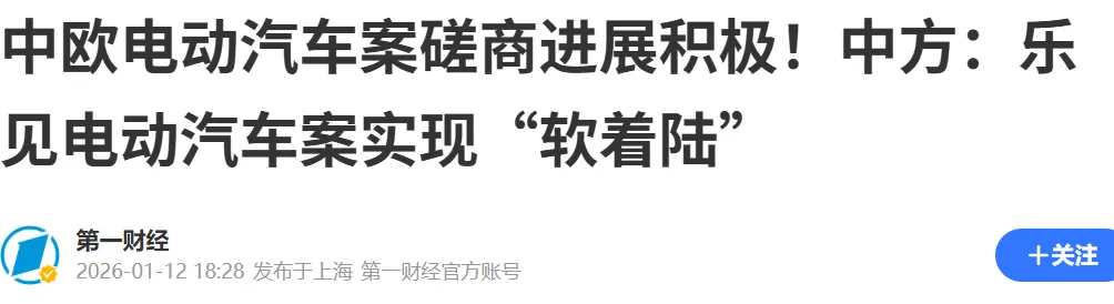这场持续两年多的贸易争端终于迎来转机。2023年10月,欧盟委员会对中国产电动汽车发起反补贴调查。2024年10月,欧盟正式对中国产进口电动汽车征收高额反补贴税,税率最高达35.3%。此后,双方多次重启并推进价格承诺相关谈判。2025年以来,中欧双方磋商步伐加快。2025年4月3日,商务部发言人何亚东表示,中欧同意尽快重启电动汽车反补贴案价格承诺谈判。到2025年6月3日,商务部部长王文涛与欧盟委员会贸易和经济安全委员谢夫乔维奇在巴黎举行会谈,电动汽车案价格承诺磋商进入最后阶段。2025年12月,磋商进一步加快。商务部发言人何亚东在当月11日的例行新闻发布会上表示,中方欢迎欧方再次重启价格承诺磋商,赞赏欧方回到通过对话化解分歧的轨道上。