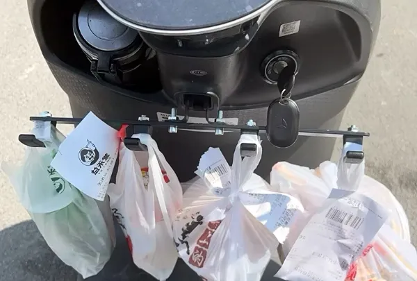 骑手们为了工作方便,在车头加装多个挂钩横杆以固定外卖箱。但这些加装物会改变车辆原有结构,影响操控稳定性。