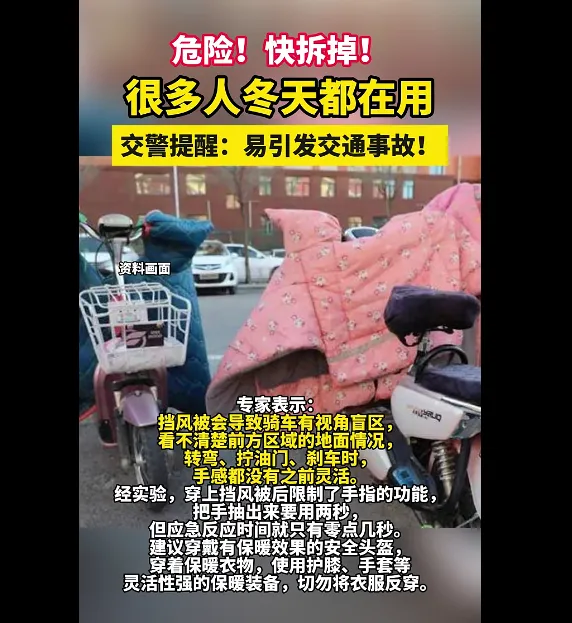 冬季严寒,各种挡风被成为摩托车和电动车的“标配”。但这些防寒“神器”却隐藏着不小的安全隐患。
