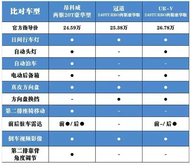 冠道/UR-V顶配更美丽 昂科威则更显诚意