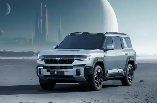 同样在北京车展亮相的豹8,看起来比豹5更魁梧,关注度也高。它基于比亚迪的DMO混动越野平台打造,车长5195mm,轴距2920mm,妥妥的中大型SUV。