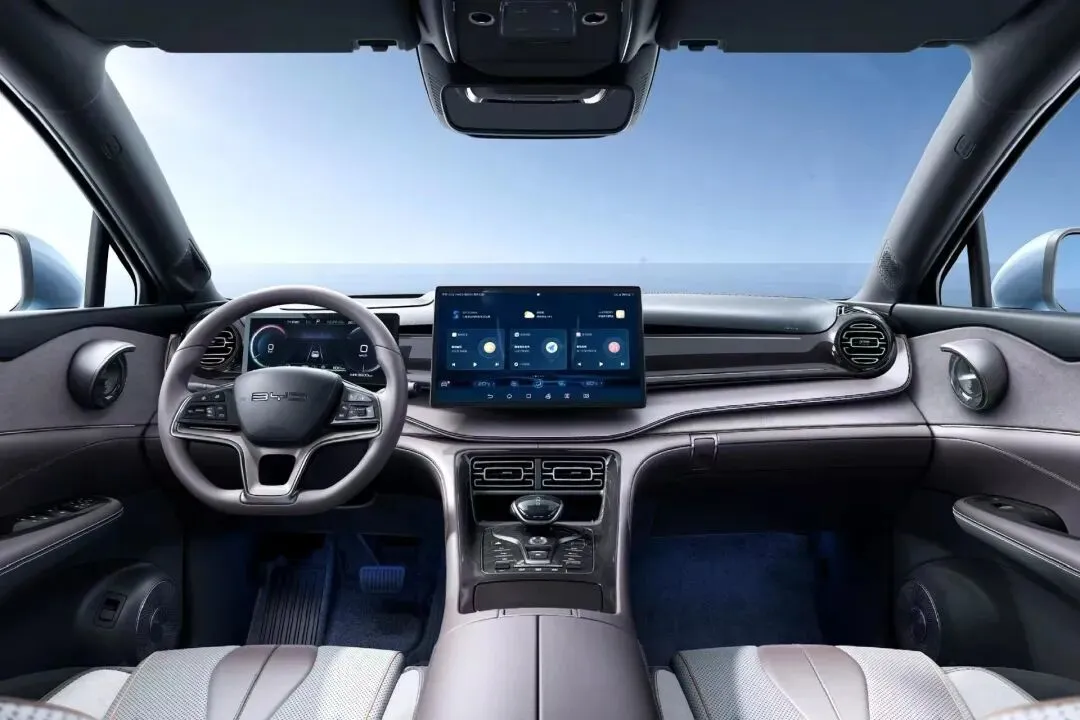 配置层面,护卫舰07把比亚迪在智能化领域的积累几乎全部塞了进来。DiLink智能网联系统自不必说,全系标配DiPilot智能驾驶辅助系统,包含ACC自适应巡航、车道保持、自动紧急制动等功能。高配车型甚至配备了透明底盘、540度全景影像和越野脱困辅助系统——这些配置放在传统硬派SUV上,往往只有顶配或选装才能享受到。娱乐配置方面,丹拿音响、氛围灯、手机无线充电等一应俱全,完全是按照家用SUV的标准在打造。值得一提的是,护卫舰07还引入了对讲机功能和外放电功能,前者方便车队穿越时通讯,后者则能在户外露营时化身移动电站,实用性拉满。