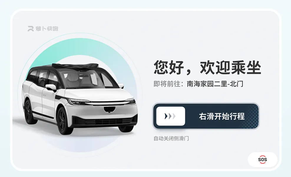 上车系好安全带,滑动屏幕中的【开始行程】按钮,即可开启自动驾驶之旅。