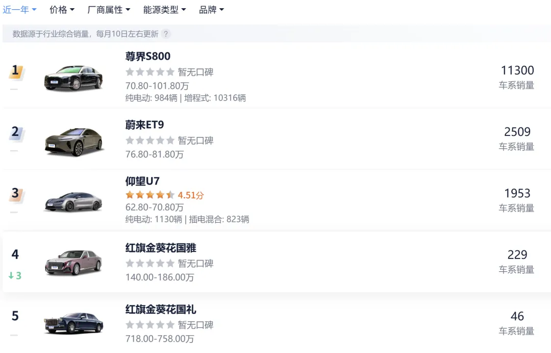 在刚过去的12月,尊界S800交付量超过4000台,与动则月销4万辆的吉利星愿相比,这一数字并不惊人,但已环比上月增长近一倍,并且比BBA+保时捷(奔驰S级、迈巴赫S级、宝马7系、奥迪A8L和保时捷帕拉梅拉)五款车加起来的总和还多。