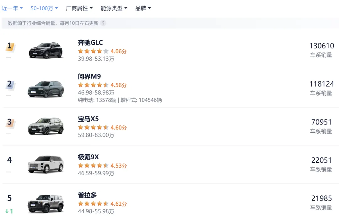 问界M9推出市场后,迅速将宝马X5拉下马。