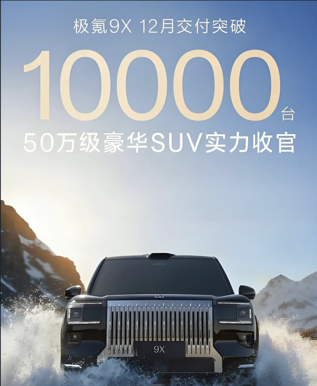 凭借着更强的动力、更豪华的用料配置,极氪9X很快后来居上,均价达到惊人的53.8万元,在11月份已经超过了问界M9,12月份销量突破1万辆。