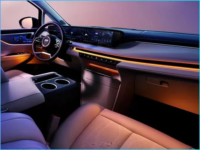 内饰的话呢,从这个官图上看,这个中控台它也是一个比较简洁的设计。然后这个屏幕,这个屏幕看起来应该是一个比较大的尺寸,可能是12寸或者更大,这个我现在看官图不太好判断。然后这个材质用料,你看这个官图上,这个应该是用的软性材质,不是那种硬塑料,这个就比较厚道了。因为之前我评测过一些别克的车,就是有些地方用料确实是有点,怎么说,就是有点对不起这个价位。