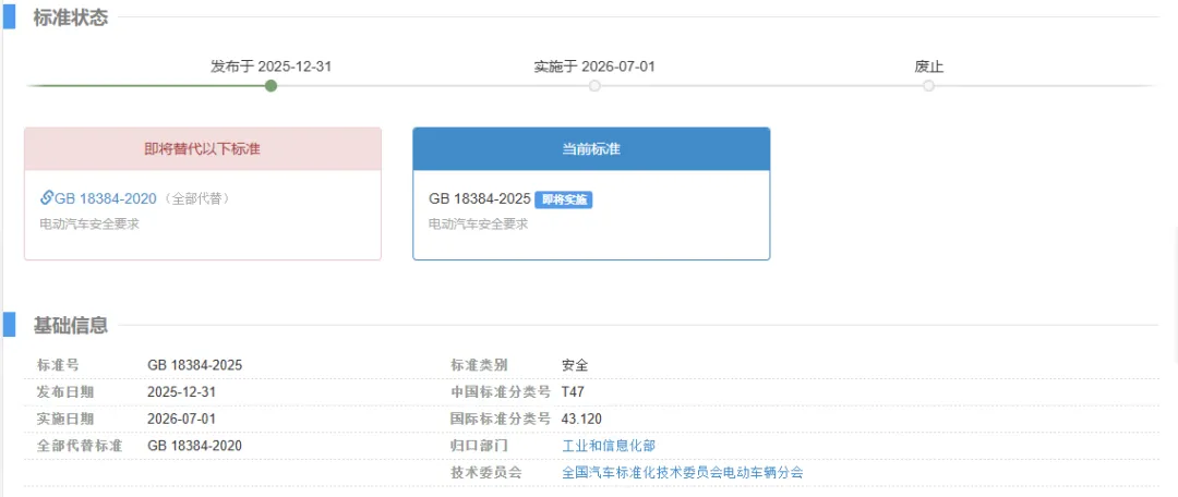 GB 18384-2025 电动汽车安全要求
