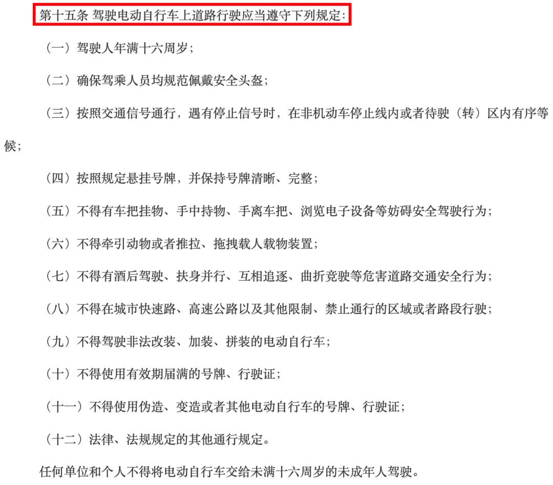 3、禁止16周岁以下未成年人驾驶电动车
