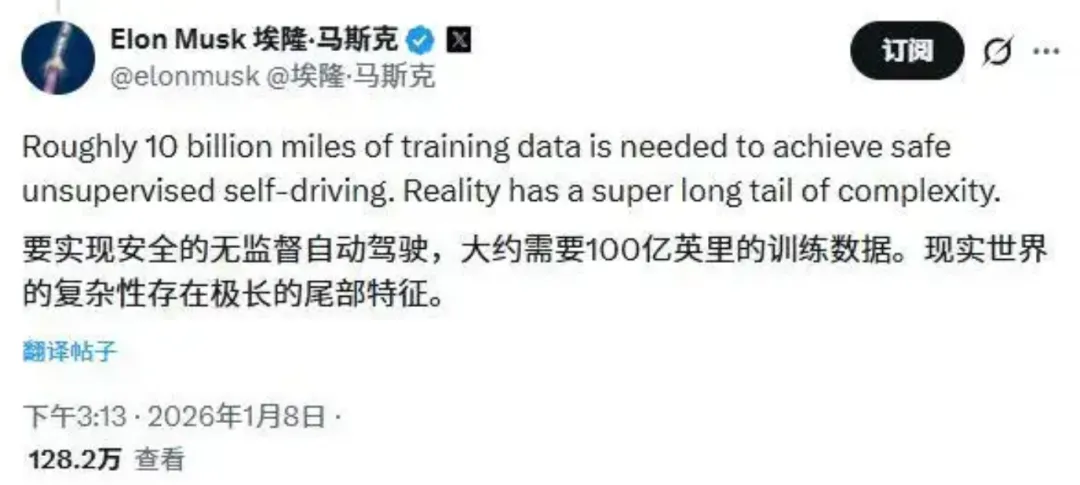 图/马斯克:攻克长尾难题可能需要100亿英里训练数据