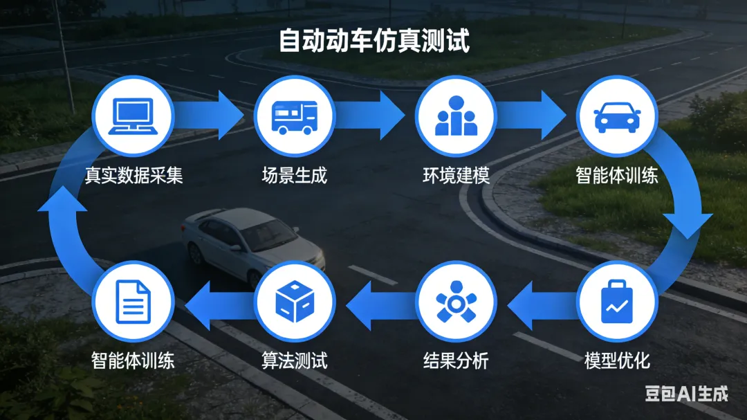5. 真实验证与迭代:将优化后的算法部署到真实测试车辆,进行小规模道路测试,验证仿真结果的真实性;同时将真实测试中发现的新场景、新问题反馈到仿真平台,补充训练数据,迭代AI模型与测试场景,形成闭环。
