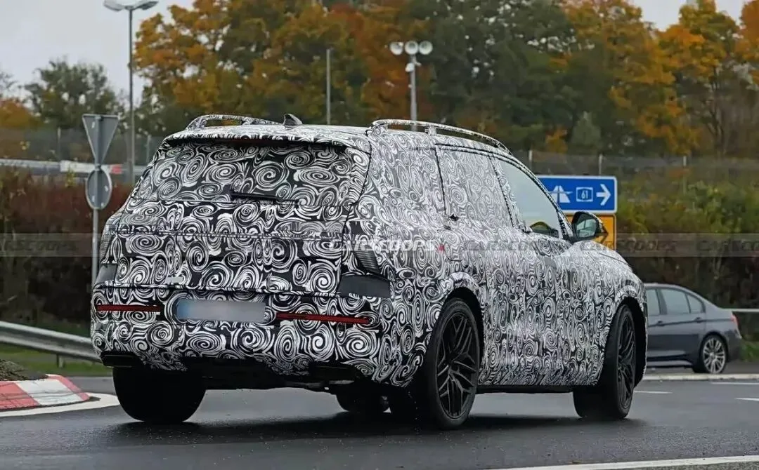 来到车身侧面,目前曝光的信息不多,目测,新车车身尺寸上,整体要比奥迪Q7大一圈。也从海外媒体信息中验证了这一点,海外媒体表示,奥迪已向部分海外经销商私密展示奥迪Q9车型。奥迪经销商透露,车内使用三排六座布局,第二排为双独立式座椅,尺寸比现款奥迪Q7大得多,可提供相比现款奥迪Q7更宽敞的第三排空间。