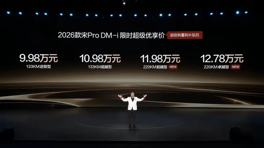 最近有朋友私下问我,十来万预算想买辆省心、能装、还不怕跑长途的家用SUV,有啥推荐?我直接甩了张图过去,刚上市的2026款宋Pro DM-i 220公里长续航版,购置税补贴后售价9.98万起,如算上置换补贴,价格还能进一步下探。他回了一串问号:“???十万块,纯电能跑两百多公里?比亚迪这是把‘价格屠夫’的剧本又演了一遍?”