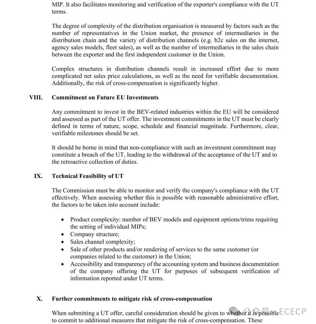 同样,若企业没有向欧盟同一客户出口其他非约束产品(如混动汽车),也有助于限制与反补贴措施覆盖范围外产品之间的交叉补贴风险。