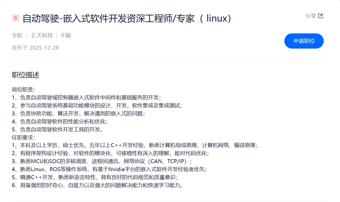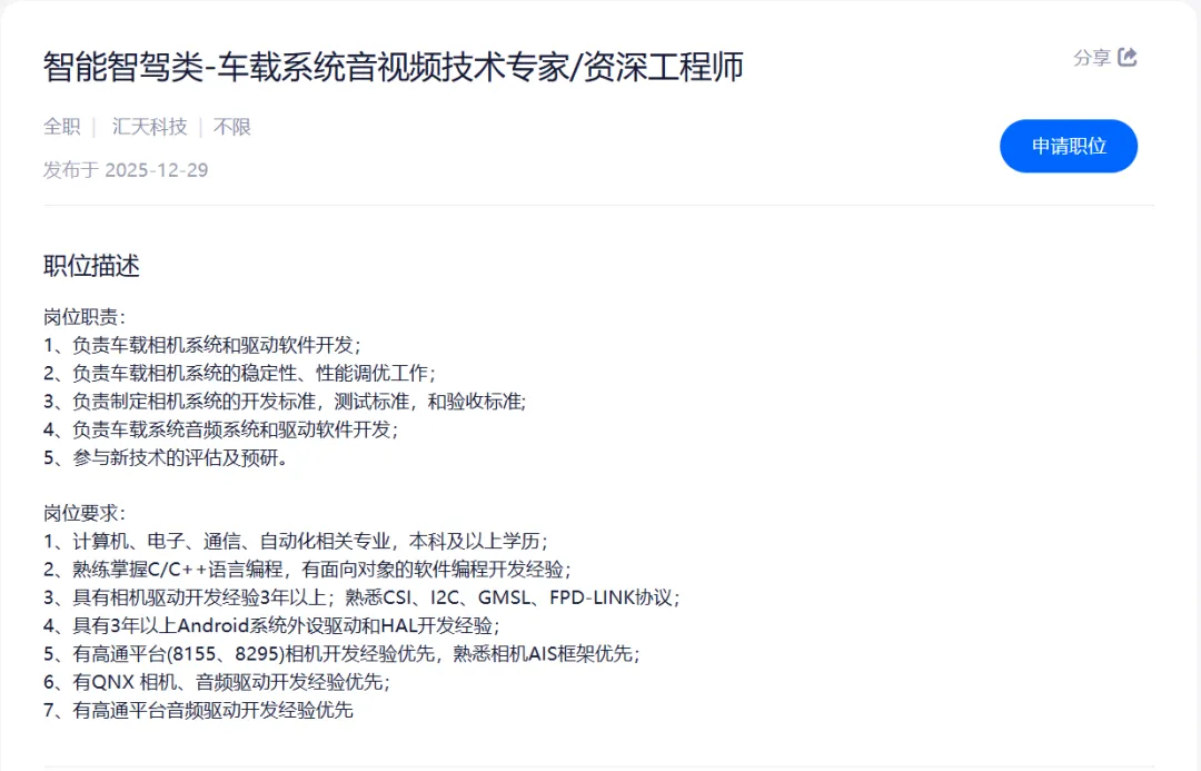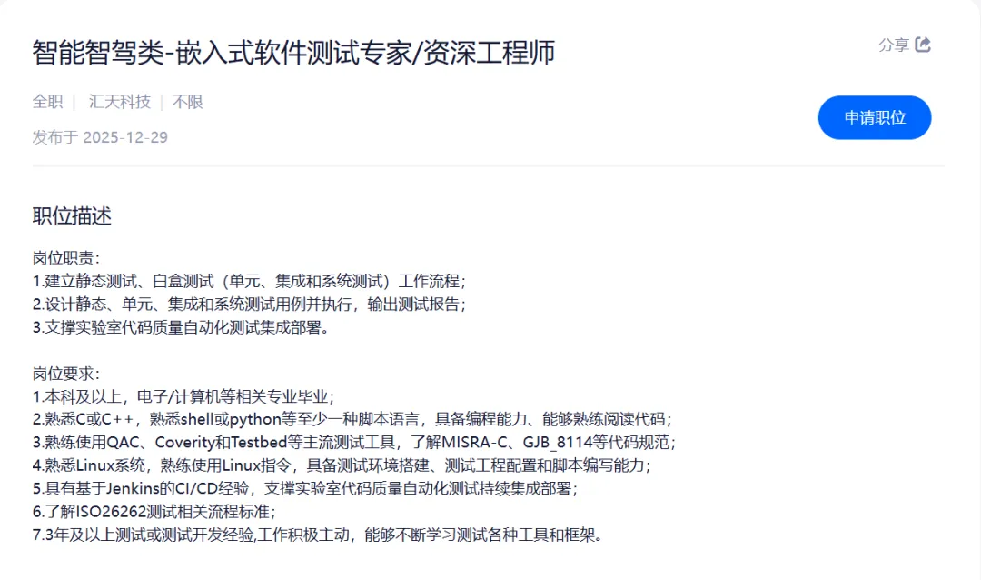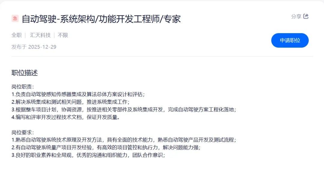 欢迎关注本账号,更多相关岗位第一时间发布,多家车企可内推。