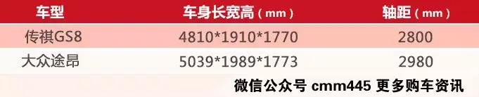 首先两台车差了一个级别,途昂是一台中大型SUV,它的尺寸足够和福特探险者、别克昂科雷竞争了;而GS8只是一台中型SUV而已,所以这里GS8输的毫无悬念。