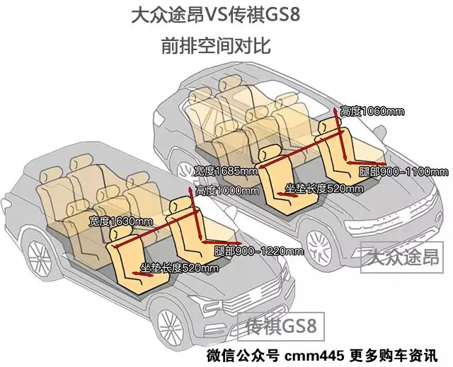 1、GS8的后排空间在中型SUV中是有优势的,只是在途昂面前显得比较小,没办法,级别不同。