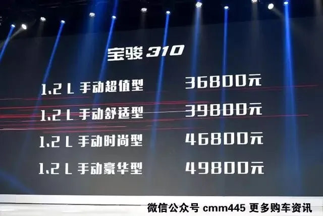 上汽通用五菱旗下全新打造的小型车宝骏310已经正式上市!官方定价为3.68-4.98万,起售价很接地气。它的车身长宽高为4032*1680*1450mm,轴距达到了2550mm。这样的尺寸比起启辰R30、威志V2等都要稍大一些。