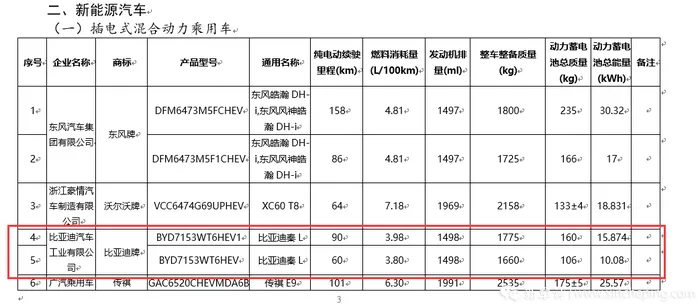 动力方面,据此工信部的消息,新车搭配10.08kWh和15.874kWh两种规格的动力电池,对应的纯电续航里程分别为60km和90km,对应的油耗分别为3.80L/100km和3.98L/100km,相比目前秦PLUS DM-i冠军版馈电状态下4.6L/100km的油耗效率进一步提升。