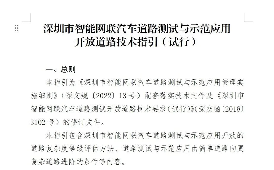2025年5月,深圳市交通运输局、发展改革委、工业和信息化局、公安交警局联合印发《深圳市智能网联汽车道路测试与示范应用开放道路技术指引(试行)。