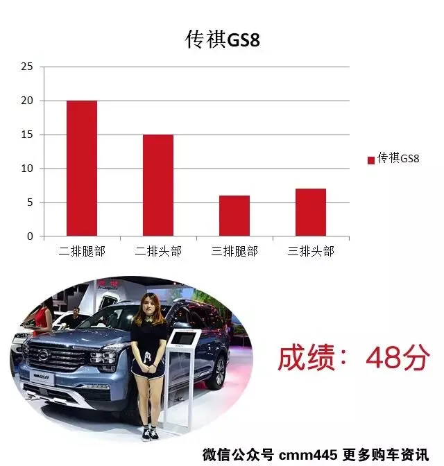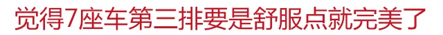 不可否认传祺GS8是款颜值很高的车型,无论是外观还是内饰都非常洋气,第二排空间表现中规中矩,但是第三排腿部/头部空间就稍显压抑,妹子嘟嘴的表情就表明坐着并不舒服,像是蹲着并非坐着,原因是其后备箱空间所占面积较大,设计有些不合理,有得必有失啊。