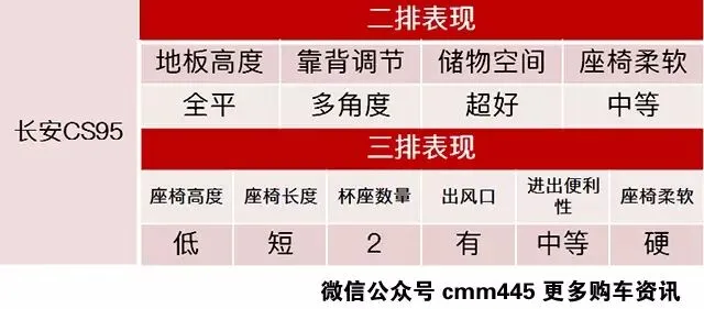 长安cs95作为自主品牌7座SUV的佼佼者,其表现自然不会令人失望,虽然说外观设计颇受争议,但是实用性方面没毛病。座椅的柔软度和贴合度做得很不错,空间也足够宽敞,妹纸表示挺享受的,举双手为CS95点赞。