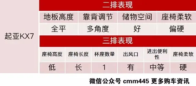 对于起亚KX7这款车,妹纸表示有点失望,毕竟其4730mm的车身长度比标致5008长了不少,不过第三的腿部空间只有三指,虽然宽厚的座椅柔软度不足,但是坐姿还是比较好的,起码第三排座椅不是小板凳了。