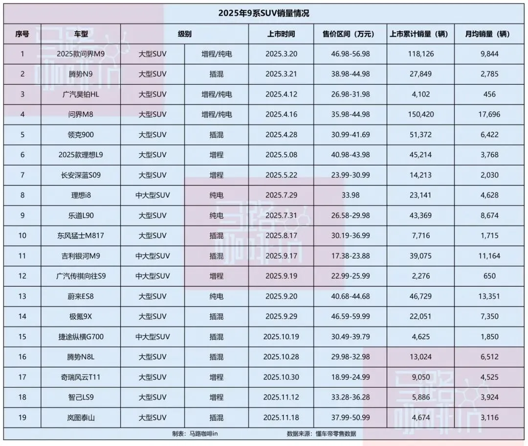2025年9系SUV混战落幕,大部分选手都沦为了“陪跑”。