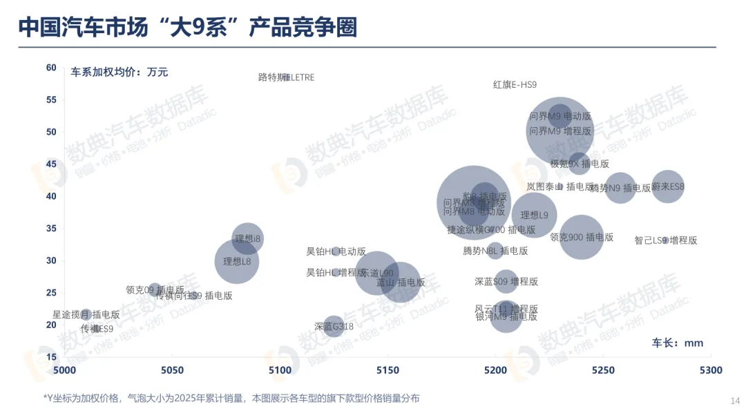 在最新12月数据,能触发月销过万的的产品,只有蔚来ES8和银河M9,问界M8/M9、极氪9X都在8000+至9000辆的水平,乐道L90和领克900在最后一个月只有4000左右的销量,所以大9系的竞争环境压力是特别巨大;