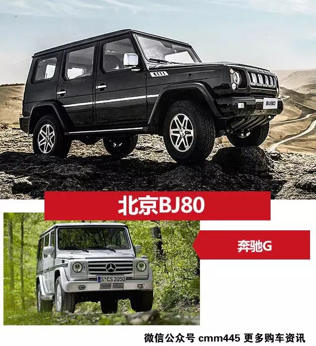 奔驰的G系列SUV是许多真男人的梦想。当然它高高在上的售价使得许多人也仅仅把它当做梦想。不过如果花上20几万就能买到一辆自主的奔驰G系列那么你愿不愿意呢?北京汽车BJ80就是这么一款SUV。它的售价低于30万,但是却有着和奔驰G系列近乎相同的外观。还有小道消息说,只要加上一套改装件它就和奔驰G一模一样了。