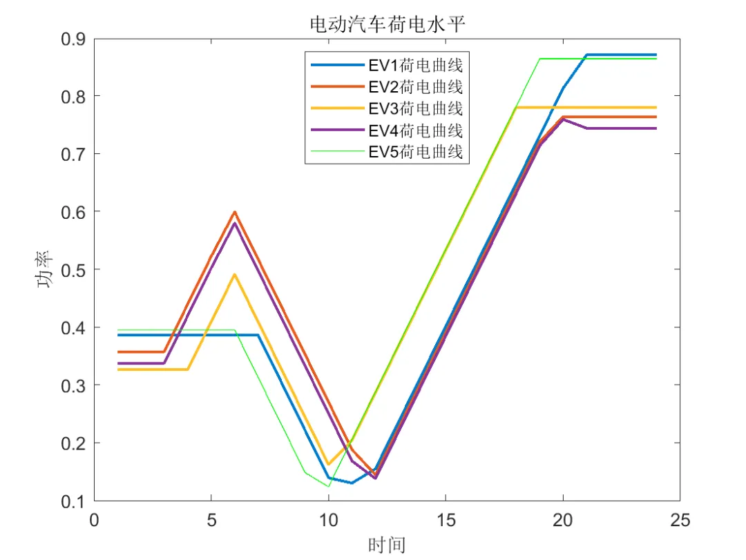 SOC约束:0.2≤SOC(t)≤0.9,避免过充过放损伤电池;充放电功率约束:P_charge_min≤P(t)≤P_charge_max(充电时),-P_discharge_max≤P(t)≤0(放电时);时间窗口约束:需在用户设定的可用时段内完成充放电,满足出行需求。