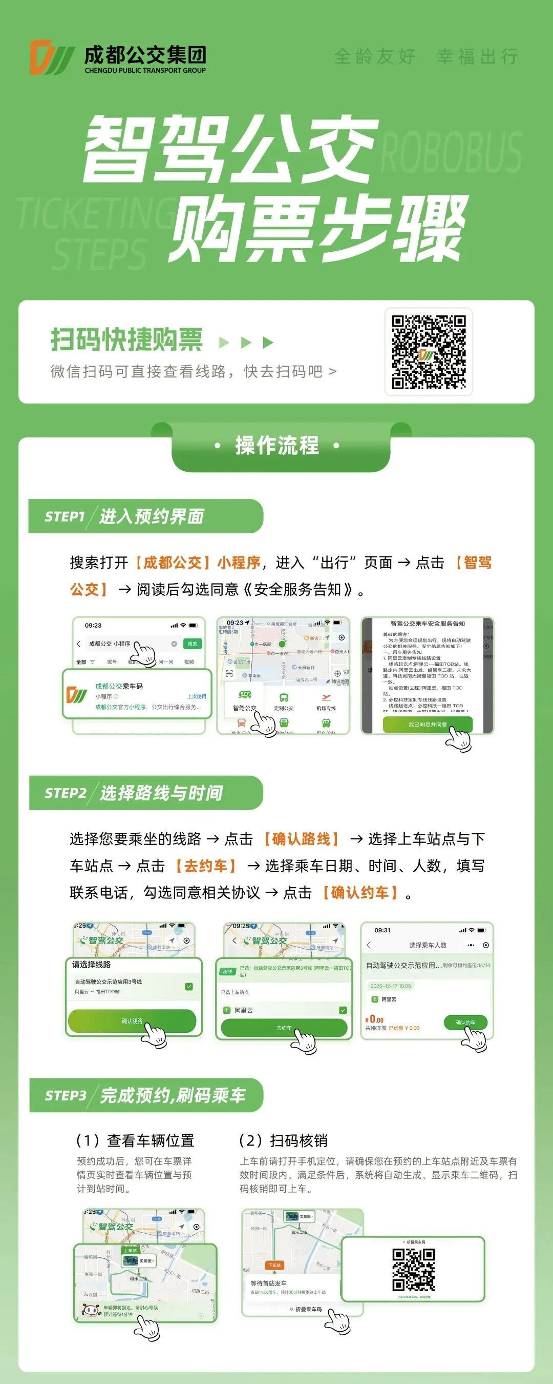 预约通道开启!自动驾驶公交1号线已开行,欢迎市民朋友前来体验→