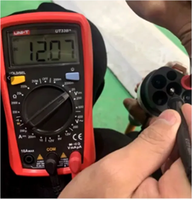 测量车辆端/供电端CC-PE阻值(680Ω/220Ω)、CP端子间阻值(<1Ω)