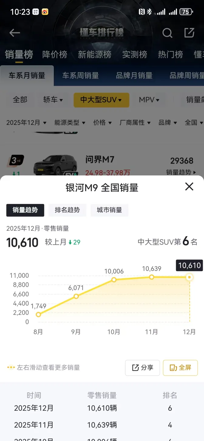 连续3个月销量破万,让吉利银河M9成为主流大六座SUV市场当之无愧的年度爆款。未来,随着“人民的M9”用户口碑不断深化,吉利银河M9将以持续进化的全能实力,巩固其“20万级大六座首选”地位,进一步驱动品牌向上征程。
