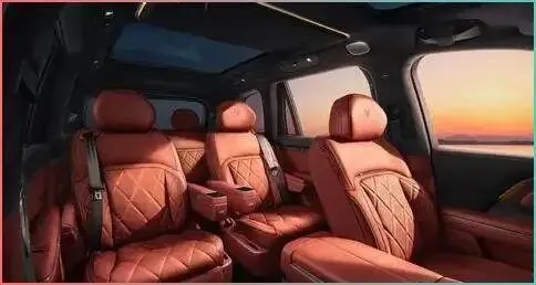三排座椅都是进口全粒面小牛皮,细节拉满。打孔工艺、V字绗缝,甚至连珍珠打孔的排列都和香奈儿手包学的。这玩意一坐下去就不想起来,尤其是二排的零重力座椅,自动内滑78mm,靠背能躺到120°,还带腿托,1米9大个子都能伸直了躺。真敢下本钱。