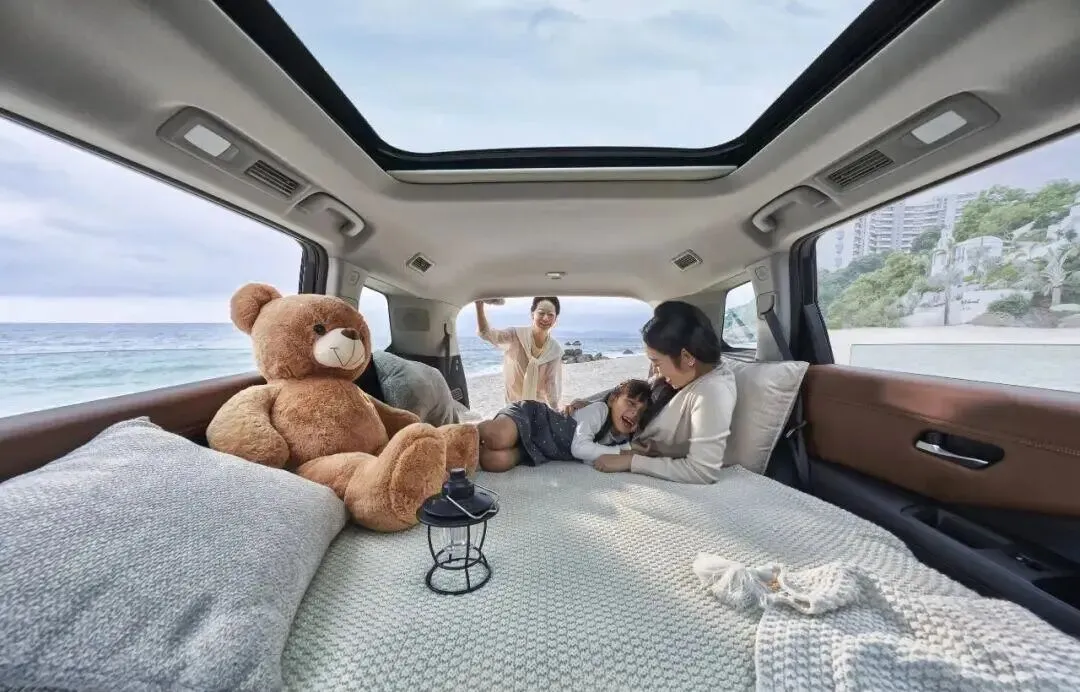 探陆的后备箱挺能装,座椅放倒后地面很平,铺个垫子立马变身"临时大床"。出去玩累了能躺会儿,挺实用的。